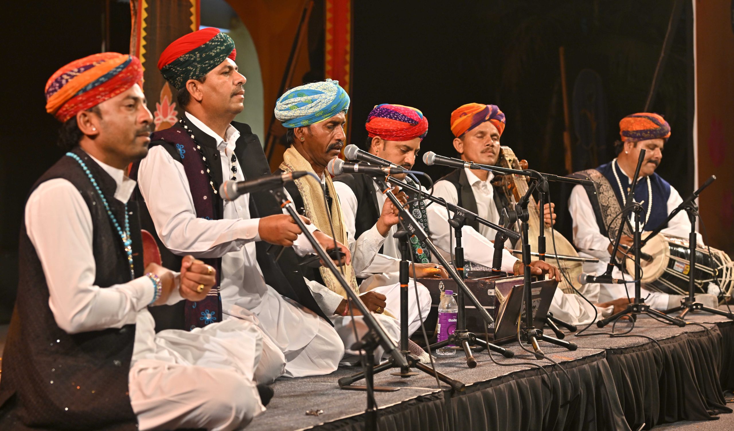 The day concluded with a vibrant folk music performance by Bhungar Khan and the Manganiyar group from Barmer, Rajasthan. A seventh-generation Manganiyar musician, Bhungar Khan is a recipient of the Ustad Bismillah Khan Yuva Puraskar (2016) and the Rajasthan Sangeet Natak Akademi State Award (2023). Having performed in over 45 countries, he continues to preserve the Manganiyar tradition through Dharohar, an institution he founded in 2007 to train young folk musicians.