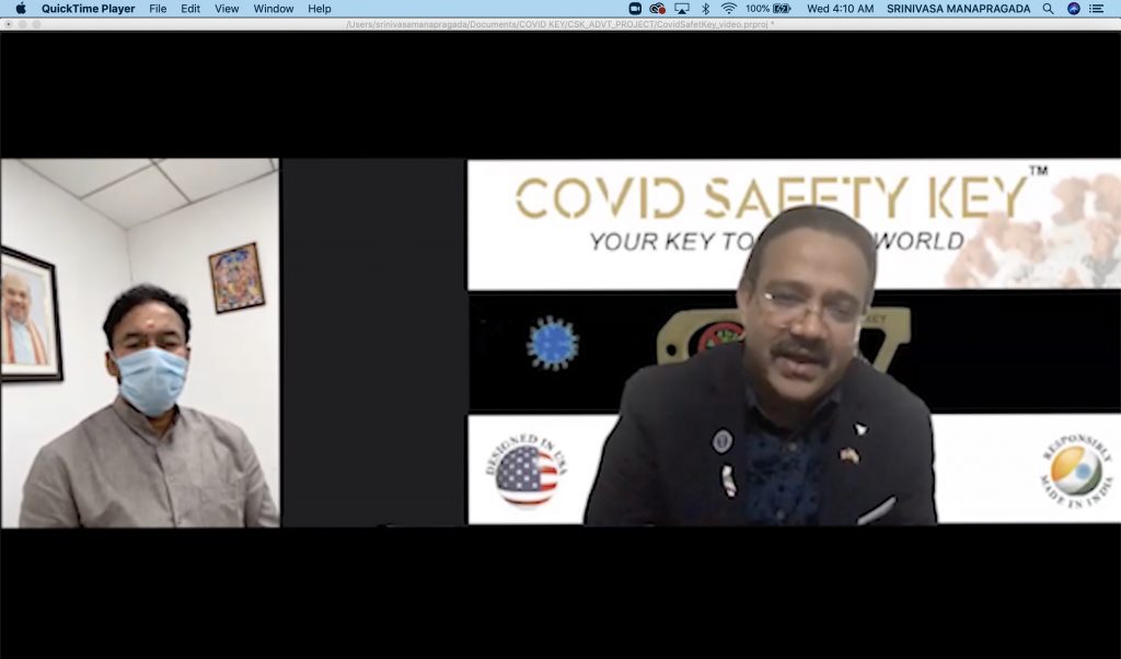 Srinivasa Manapragada who joined this function on Video Conference from USA applauded the initiatives and efforts of Hon’ble Shri Narendra Modi Ji, Prime Minister of India, Hon’ble Shri. Amit Shah Ji, Union Minister for Home Affairs and Hon’ble Shri. G Kishan Reddy JI, Minister of State for Home Affairs in controlling the Pandemic by providing precautionary equipment’s to Hospitals & Frontline workers in India which really inspired Labcube company to come with this simple device that can be used by common public. Mr. Srinivasa Manapragada explained in detail the use of this invention “Covid Safety Key” product to Hon’ble Minister Shri Kishan Reddy. On this note Labcube Managing Director and Partner Mr. Arougya Raju presented a proposal in requesting Hon’ble Minister Shri Kishan Reddy to propose the use of “Covid Safety Key” to the Government of India, for implementation in All Government Offices, Airports, Indian Railways, Banking Sectors, Education Institutions, Corporate Companies, Shopping Malls etc.
