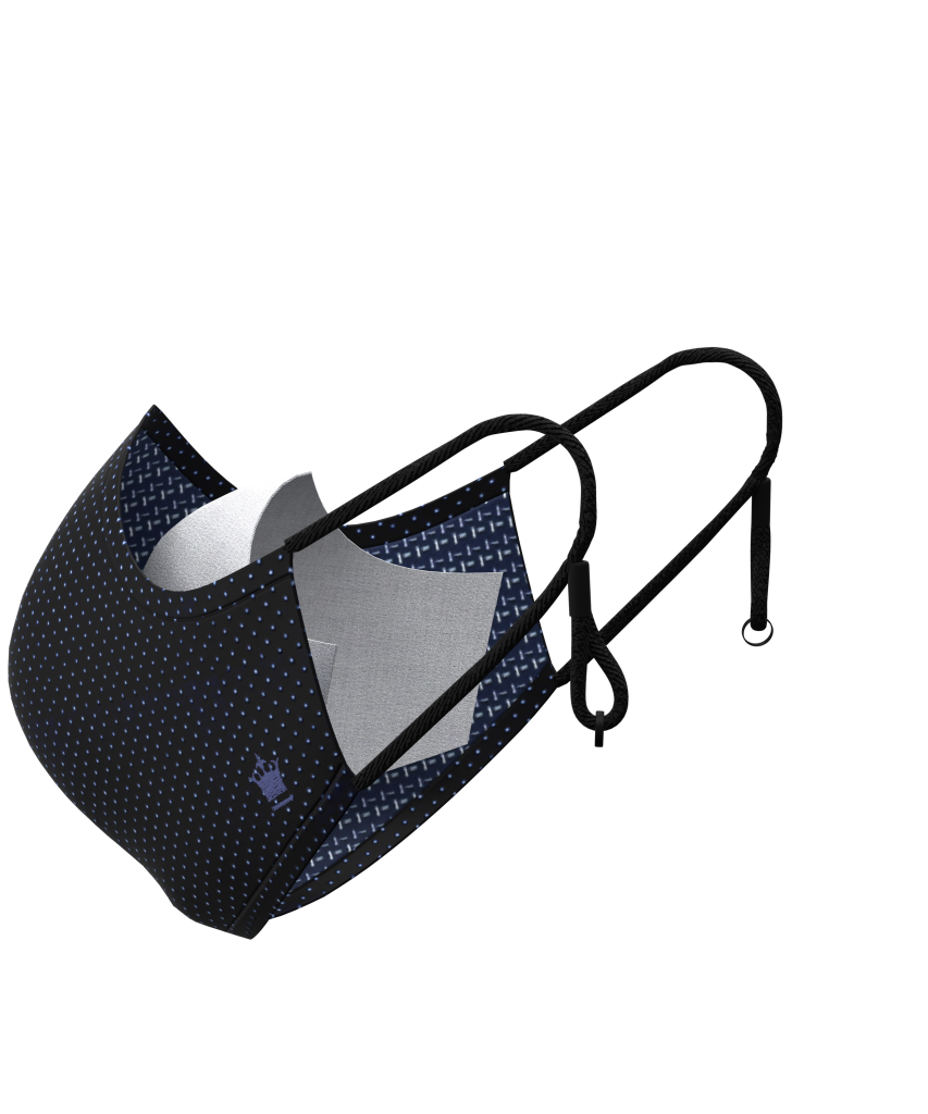 Louis Philippe UltraProtect Double Defence masks constitutes a 5-layer mask and 5-layer filter panel. The 5 layers in each mask are made of two layers of premium cotton for comfort and three layers of melt blown for high filtration (in accordance to ASTM F 2101 tested in government approved laboratory). The fabric used is treated with HeiQ Viroblock which results in destruction of the possible contamination by viruses and bacteria on fabric providing utmost protection. Both the mask and filter are washable and recommended to be reused up to 30 gentle laundering.