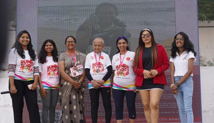Bengaluru: M5 Ecity Mall, the premier shopping destination in Bengaluru collaborated with the Stick to Safety group to host the Stick to Safety and Quality Marathon, in celebration of International Women’s Day. The inclusive community run was inspired by the global theme “Give to Gain.” The event was flagged off by Mrs. Swathi Maurya, Fitness coach and Cultural ambassador for Aesthetic Creation and Mr. Dattatrya, a senior ambassador aged 95, and a veteran runner from 8 years.
