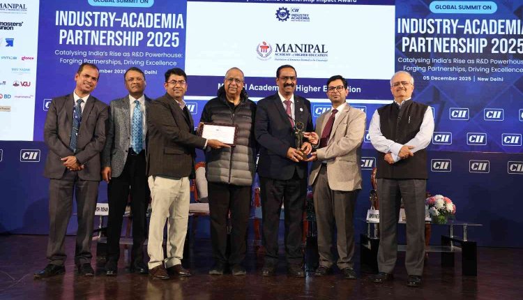 Manipal: Manipal Academy of Higher Education (MAHE), an Institution of Eminence Deemed to be University, was conferred the CII Industry–Academia Partnership Award in the Platinum Category at the CII Industry–Academia Partnership Summit held on December 5, 2025, in New Delhi. Dr. Harish Kumar S, Director – Corporate Relations, received the award on behalf of MAHE.