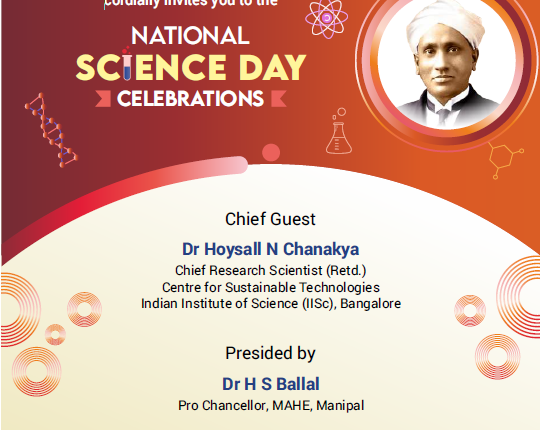 Manipal Academy of Higher Education (MAHE), an Institution of Eminence Deemed to be University, will organise the National Science Day Celebrations 2026 on Saturday, February 28, at the Dr TMA Pai Auditorium, 3rd Floor, KMC, Manipal. The chief guest for the programme will be