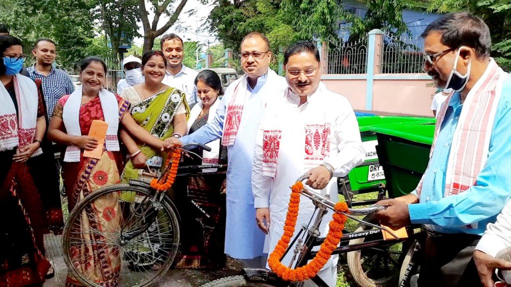 He also appealed to the families of the 5,500 odd tax payer’s households to pay relevant taxes to the agencies engaged to collect the garbage from their door steps . At the same time he expressed his concern for not having a definite dumping ground of the municipal board and asked the district administration to resolve the issue on priority basis without further delay. MP, Dilip Saikia in his spech sought the necessary cooperation from Mangaldai Legislator Basanta Das and other stake holders cutting across the politica barriers in solving the civic problems of district headquarter town. Earlier he ceremonially began the distribution process of 18 nos of garbage carrying tricycles to the agencies engaged for its disposal. The function chaired by Rini Hazarika, the Executive Officer of the organizer, Mangaldai Municipal Board was also addressed by Mangaldai Legislator Basanta Das, President of Mangaldai Chambers of Commerce Mukul Chandra Deka, Associate Professor of Mangaldai College, Dr Kamala Kanta Borah and Bijay Kr Sarma of the PHE department among others. The objectives of the function was explained by the concern program manager Heramba Kakati . The inaugural function will be followed by several other Swachhata programmes like community toilet cleanliness , waste to art exhibition and ‘safaimitra amrit samman samaroh ‘.