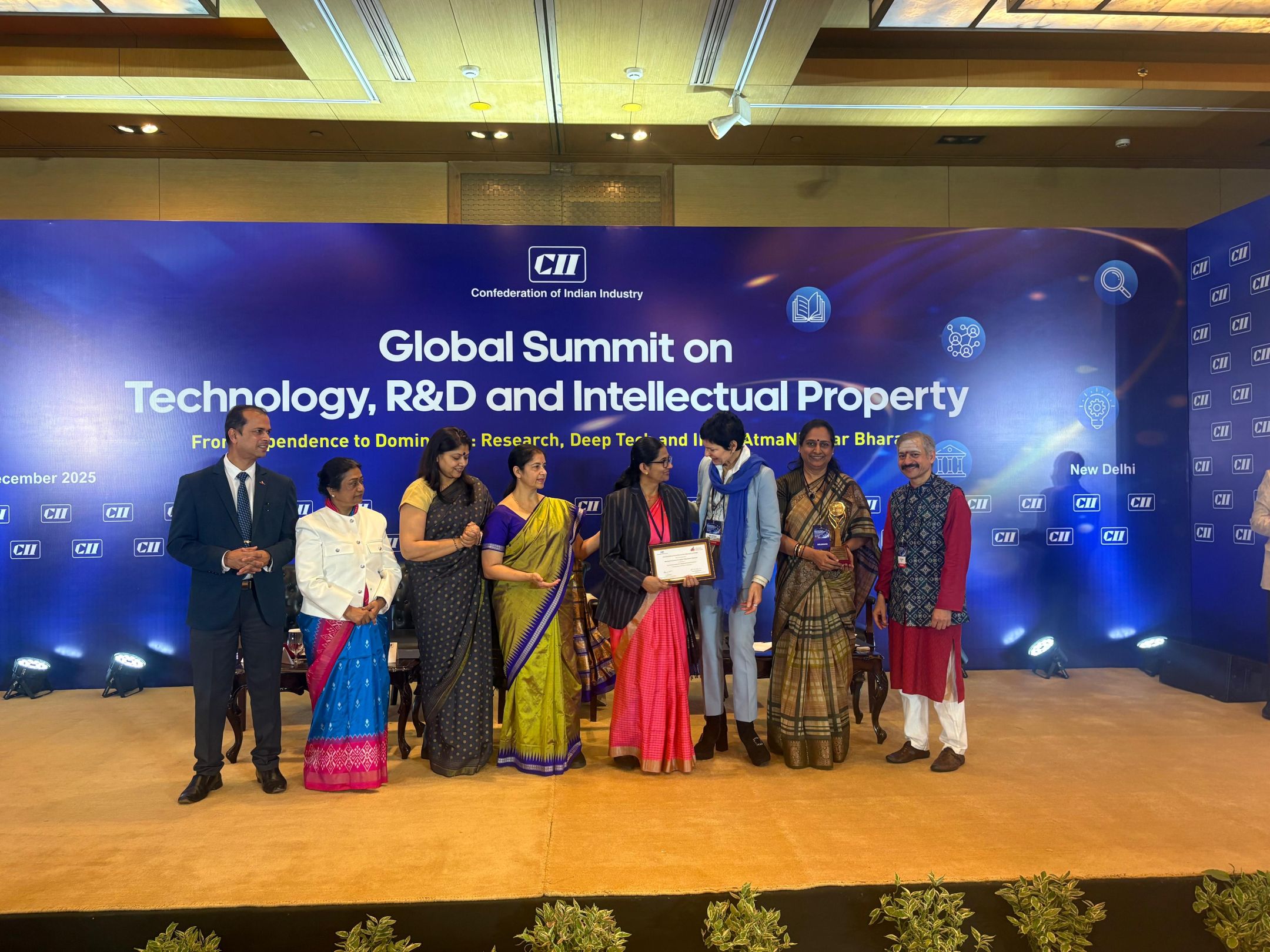 The award was received on behalf of the University by Dr. Chandrakala C. B., Joint Director, Manipal Institute of Technology (MIT), Manipal, and Dr. Prema K. V., Joint Director, MIT Bengaluru. The presentation was made by eminent dignitaries, including Dr. Ashish Mohan, Executive Director, CII; Dr. Vaishali Nigam Sinha, Chair, CII Women in STEM Initiatives and Co-founder of ReNew and Chairperson of Sustainability; Ms. Inge Buffolo, Director, European Union Intellectual Property Office (EUIPO); and Dr. Chandrika Kaushik, Distinguished Scientist and Director General of Production Coordination and Services Interaction, DRDO, Government of India.