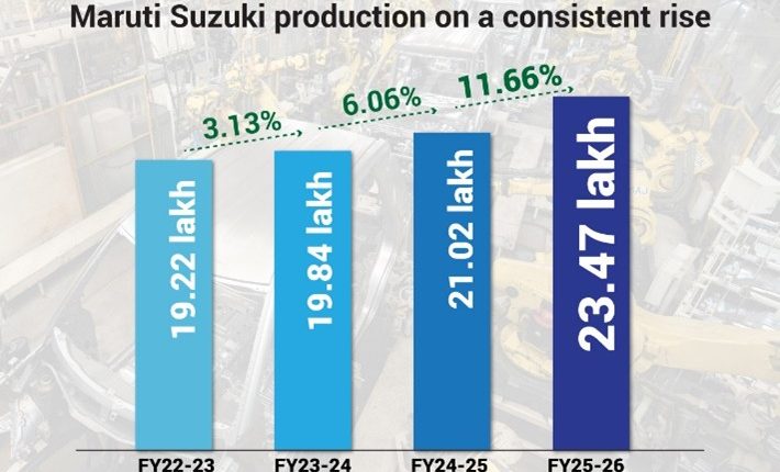 Maruti Suzuki records an all-time high production of over 23.4 lakh units in FY 2025-26