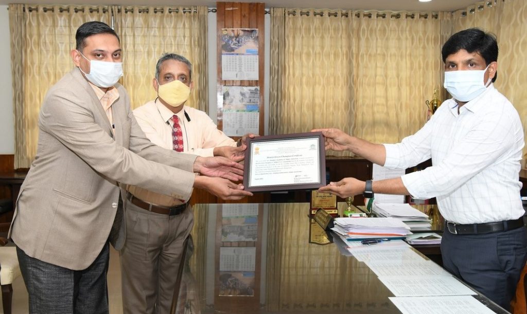 Col Prakash Chandra, Director – General Services, MAHE, and Mr Derrick Ian Joshua, Assistant Director, Environment sustainability – MAHE, received the certificate on behalf of MAHE from the Deputy Commissioner – Udupi on 17 Aug 2021