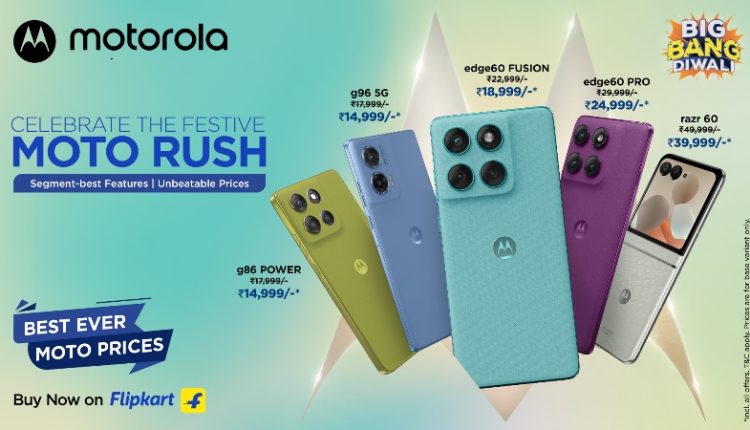 Mumbai: Motorola, a global leader in mobile technology and India’s most trusted AI smartphone brand, has announced massive seasonal discounts on its most popular smartphones across price groups, exclusive to Flipkart’s Big Bang Diwali Sale 2025. As part of the #BigBangDiwaliSale, Motorola is bringing its newest advancements in AI, Pantone™ design, and durability to millions of customers at unprecedented pricing. The items go on sale on October 4th at 00:00 hrs. and will be available to all consumers throughout the Big Bang Diwali Sale.
