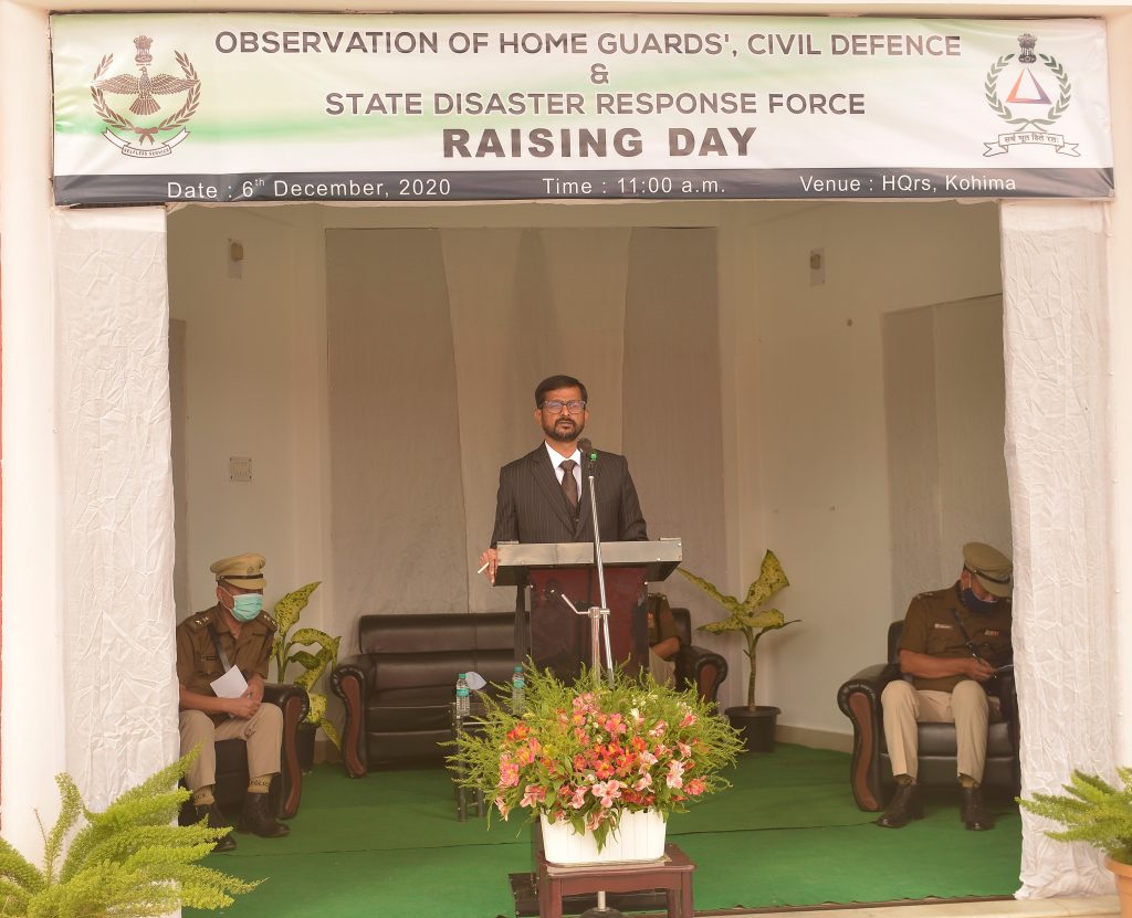 Dimapur: The Nagaland Home Guards: Civil Defence and State Disaster Response Force (SDRF) observed its 58th Raising Day at its headquarters in Kohima today. Unlike previous years, tThe annual Raising Day celebrations were held only a short formal programme because of the Covid-19 pandemic.