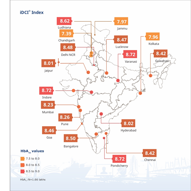 iDCI (Indian Diabetes Care Index) was introduced in the year 2018 as part of the programme to improve diabetes care in the country. Based on big data analytics, iDCI has been providing a real-time view of the average HbA1c in India, a key indicator of the state of diabetes control across select cities. Under the Impact India programme, digital platforms are also being leveraged to partner with practitioners (doctors and paramedics) to evolve and implement an approach to diabetes care appropriate to India. iDCI is a dynamic tool that not only tracks the status of diabetes care but also helps to increase awareness, motivate, and sensitize healthcare professionals (HCPs) and society towards better diabetes management.