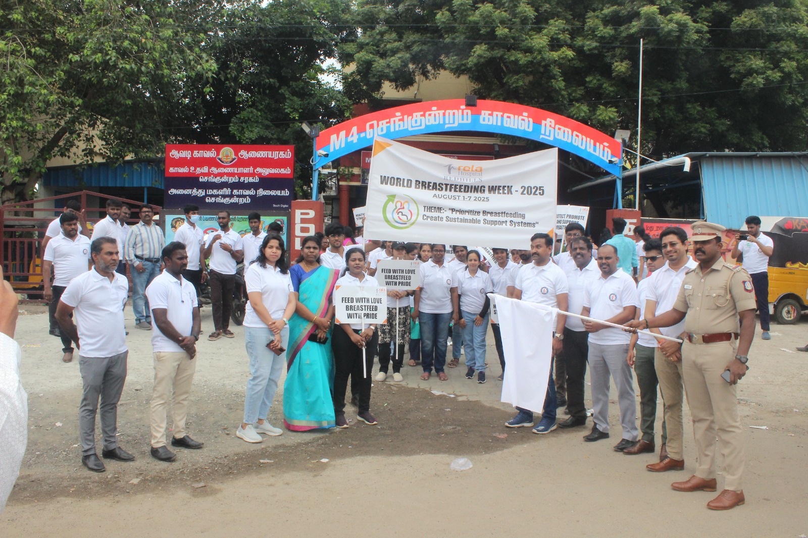 The 5-km walkathon, starting from Redhills Police Station to Rela Hospital Redhills, saw enthusiastic participation from over 500 individuals including students and faculties from colleges, doctors, nurses, lactation consultants and hospital staff. The participants walked with banners and informative placards containing messages on benefits of breastfeeding for both mother and child. Doctors and hospital staff of Rela Hospital also engaged with participants and answered questions about breastfeeding practices and support systems.