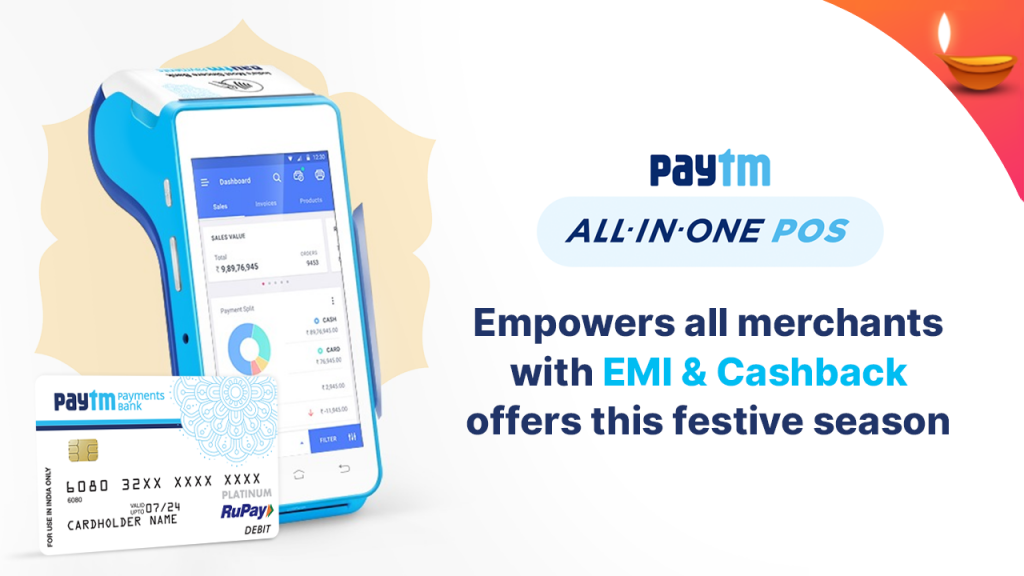 India’s leading digital financial services platform Paytm has today announced that its All-in-one POS devices are empowering all businesses including small shopkeepers, retailers across the country with EMI offers, cashback from top banks & partnered brands. During the ongoing festive season, the company is enabling offline merchants to offer their customers deals similar to e-commerce players and large retailers. Paytm said that over 2 lakh offline businesses powered with POS devices would be taking part in the initiative.