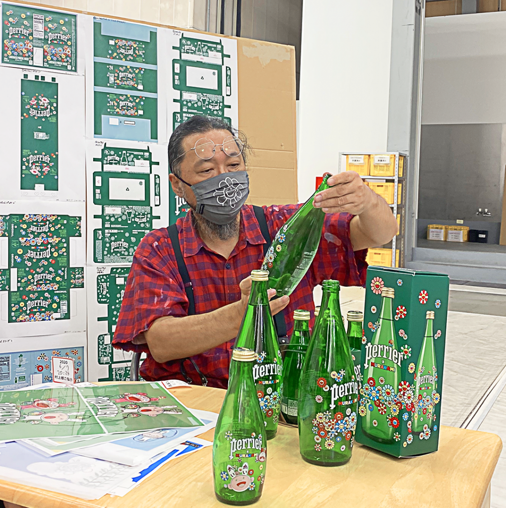 Murakami’s signature smiling flowers will bring an extra pop of color and joy to the iconic green PERRIER® bottles, in screen-printed glass formats. Some bottles will also feature Murakami’s most beloved characters, Kaikai and Kiki, who will also appear alongside PERRIER in a 30-second animated film, produced with Murakami. Additional product formats, including cans, will launch in early 2021.