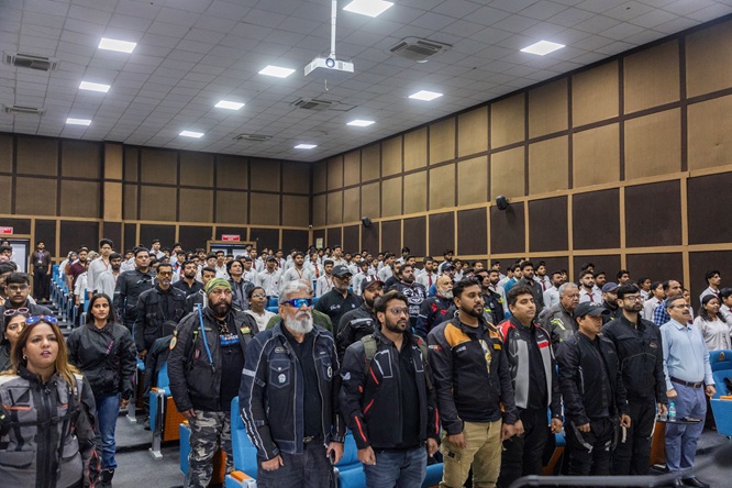 As part of the initiative, the first halt of the ride was at Teerthanker Mahaveer University (TMU), where an interactive session was conducted with more than 200 students. The session aimed to create awareness about responsible driving practices and educate participants about important government initiatives, including the Rahveer Rahat Scheme, along with other key road safety measures.