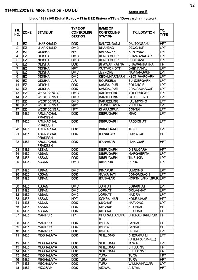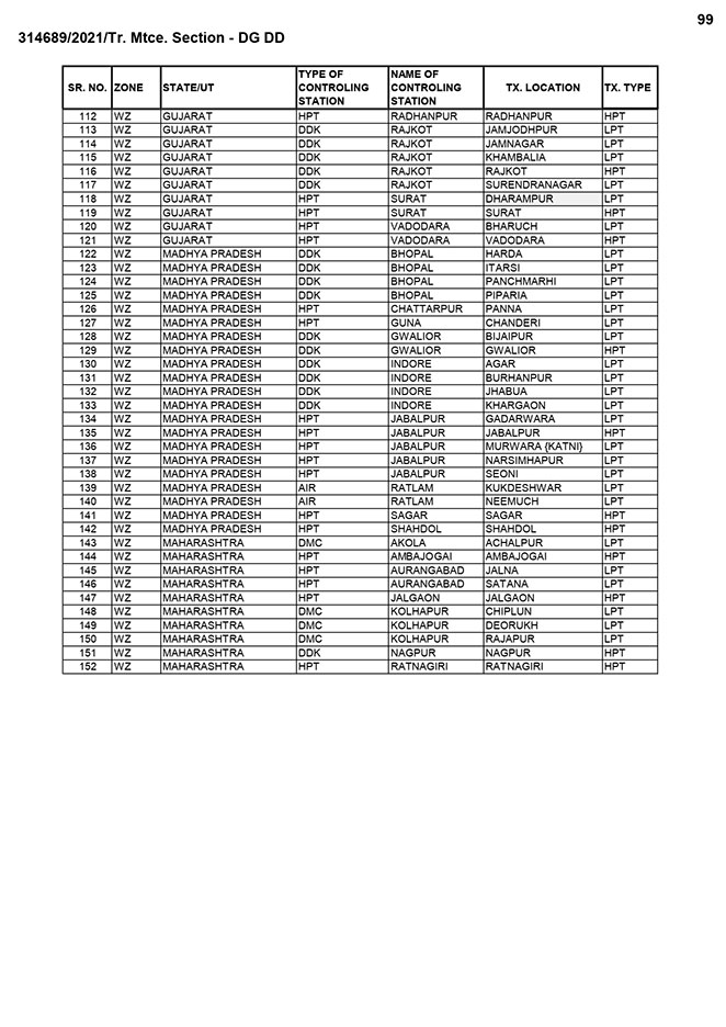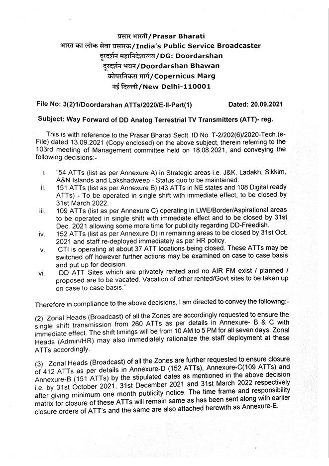 Intense initiative from Prasar Bharati to acquire state-of–the-art technology for upgrading performance at par with international standards is highly appreciable.  Along with this, may be to  lessen the extra financial burden that may mount on the national exchequer, an administrative decision was also taken to close down its outdated terrestrial Broadcasting field units since the system has already been switch over to the new technologies available in the area of broadcast and telecast. As per the direction of the Board as many as 450 obsolete field units- High Power Transmitters (HPT), Low power Transmitters (LPT) and Doordarshan Maintenance centres (DMC have already been closed down so far. By the current financial year end about 100 more such outdate terrestrial Broadcasting field units will be wound up.
