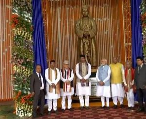 Guwahati : Prime Minister Narendra Modi unveils the statue of Maharaja Bir Bikram Kishore Manikya Bahadur in Agartala.Prime Minister Narendra Modi on Saturday unveiled a statue of Tripura’s last ruler, Maharaja Bir Bikram Kishore Manikya (reigned 1923-47), at the airport which was renamed after him in July last year. Reaching here from Guwahati, Modi unveiled the 7.5-foot-high, fibre glass statue, designed and built by the faculty and students of