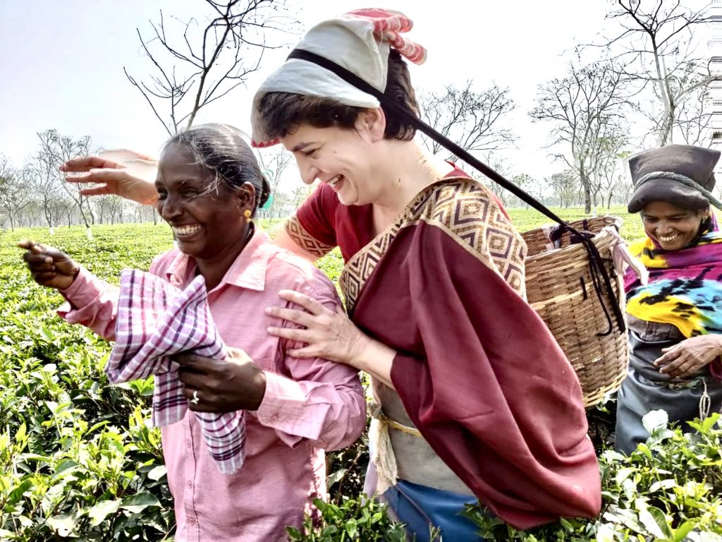 GUWAHATI : Continuous efforts are being made by the Congress to reach out to different sections and woo them in the Assam assembly elections. Congress general secretary Priyanka Gandhi is on a state visit. On Monday, she had darshan at kamakhya Temple and met party workers in Lakhimpur district. Later the Congress leader arrived at the Sadhuru tea plantation in Vishwanath District on Tuesday. In the garden, Priyanka was seen in working dress like other employees of the tea garden. They pluck tea leaves with their hands and put them in the basket. Wearing a saree, the 49-year-old had a basket on her back balanced by one hand on her head. She also wore an apron as she took on the task of plucking tea leaves.
