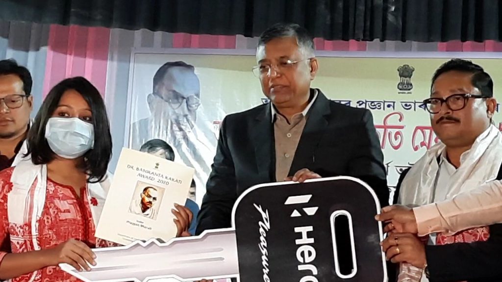 Mangaldai : Sidhartha Bhattacharya, State Minister for Law and Guwahati Development as the chief guest ceremonially distributed keys of scooties to five meritorious girls students here on Sunday to mark the beginning of processing of scooty distribution to a total of nine hundred and eight girl students of Darrang district who had passed the last HS final examination in the first division. In this connection a public scooter distribution ceremony was held in district library auditorium under the aegis of the district administration. Addressing the students minister Bhattacharya termed the HS examination as the most important examination to set a goal for future career of a student. He hoped that the award would not only help the meritorious girl students to pursue their higher education saving time and energy, it would also inspire the younger students to do better in the HS examination in future. Earlier speaking on the occasion Mangaldai Loksabha MP Dilip Saikia pointed out that PM Modi led BJP at the center and the BJP led state government both are giving much importance in women empowerment and this scheme is one of its examples . MP Saikia also warned the beneficiary students and their guardians never to sell off their scooties. On the other hand Mangaldai Legislator Gurujyoti Das appealed to the beneficiaries to obtain a license, drive carefully wearing and obey traffic rules while Sipajhar Legislator Binanda Kumar Saikia gave a brief account on the scholastic virtues of Dr Banikanta Kakati. In the beginning Deputy Commissioner Dilip Kumar Borah delivered his welcome speech.