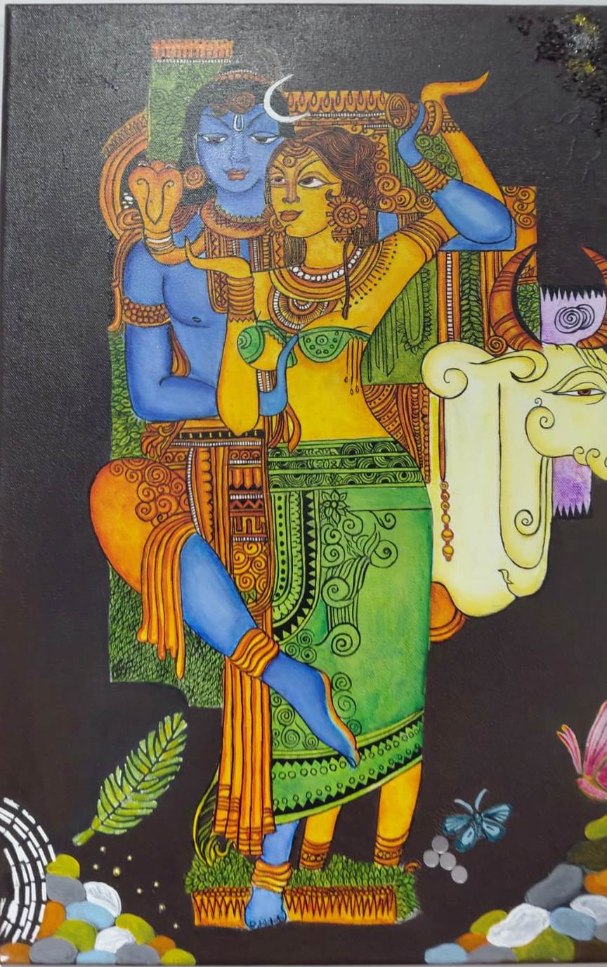 Now 38, Shary stands out for the authenticity and spiritual intensity that run through her work. Over the past few years, she has participated in solo and group exhibitions, art festivals, immersive installations, and public mural projects across Kerala. With a growing body of work that resonates with both local and wider audiences, she is emerging as a thoughtful and promising voice worth watching.