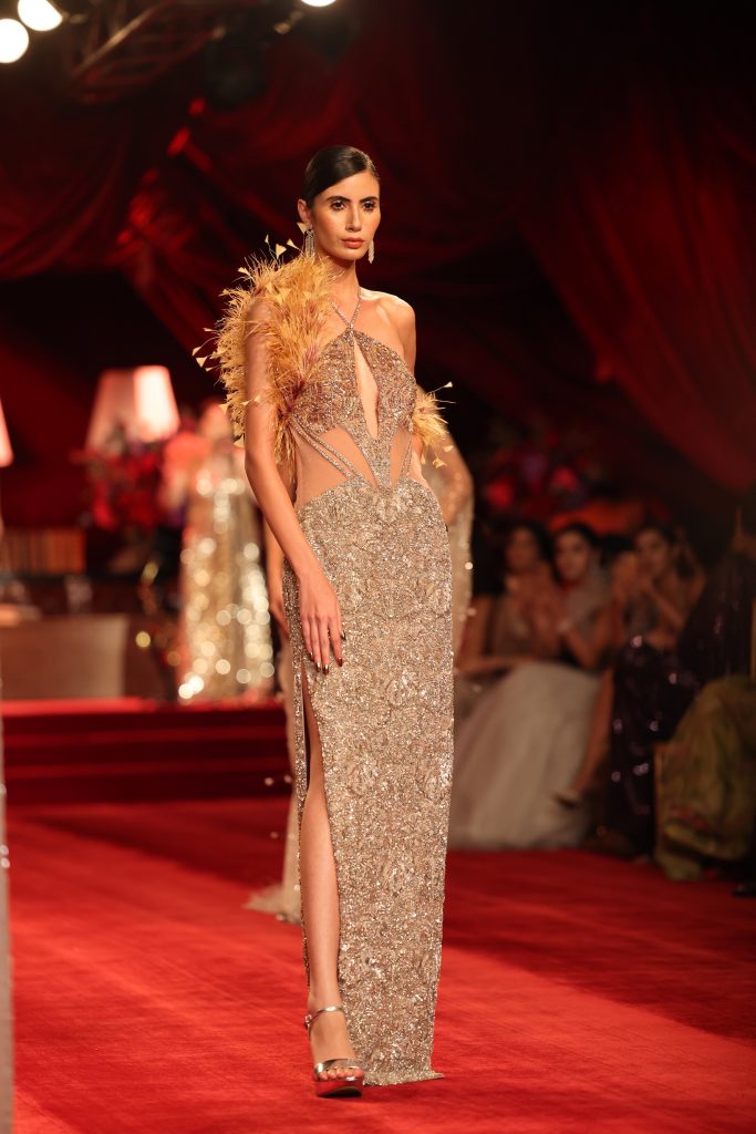 Adding glamour to the most prestigious event in the fashion industry, Sawansukha partnered with Dolly J for the first time, for her collection titled Meraki. Complementing the collection’s golden hues, fluid textures, and dramatic cascades, Sawansukha’s rare and gorgeous Diamond and Jadau jewellery was featured on the ramp and was very well-received.