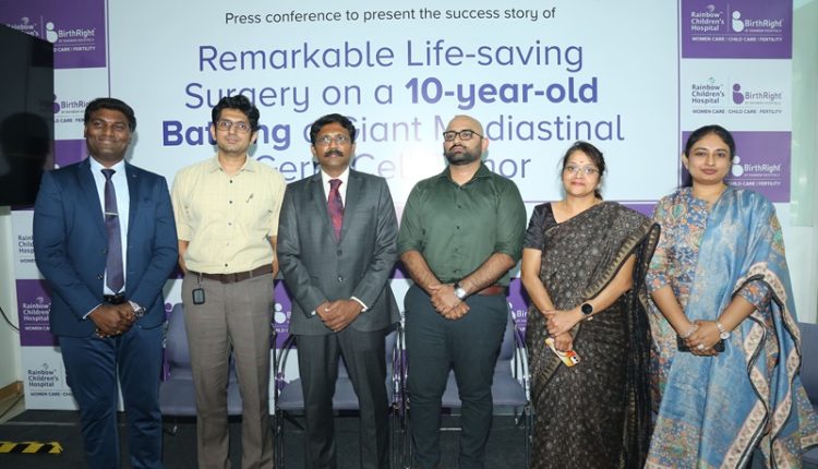 Chennai : What began as seemingly routine, recurrent chest infections in a 10-year-old schoolboy turned into a life-threatening diagnosis, highlighting how silent and easily overlooked certain pediatric conditions can be. Delayed recognition of underlying symptoms allowed a rare 900g mediastinal germ cell tumor to grow undetected, occupying a significant portion of the child’s chest. However, timely intervention and advanced multidisciplinary care at Rainbow Children’s Hospital, Chennai, led to the successful diagnosis and complete removal of the tumor, giving the child a new lease on life.