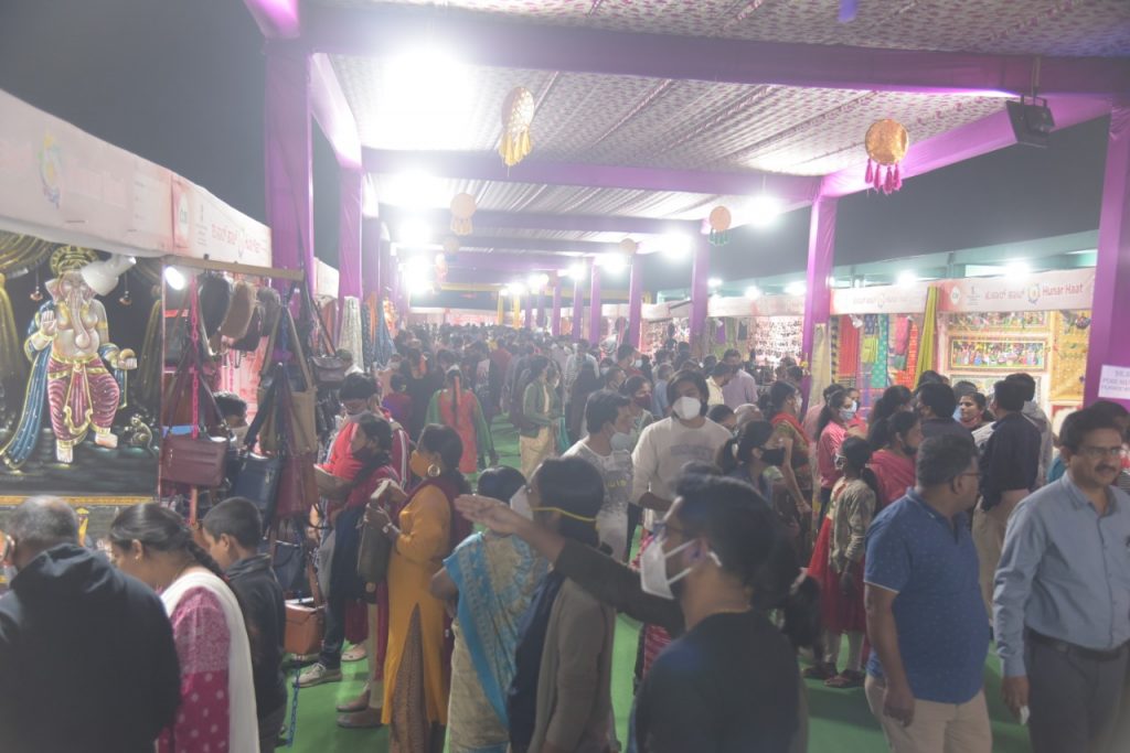 The ambience of the entire venue was inspired by various facets of culture of the people of Karnataka. The entrance gate was inspired from Mysuru place. There were various selfie points installed at the venue where the crowd were clicking numerous selfies. Food stalls of cuisines from all across the country were available. Lip smacking food were prepared by the culinary artists who had come from various parts of the country. Huge variety of artistic materials were available at the event. Artisans from all across the country had participated in this event and showcased their products. Many artisans have claimed to have daily sales of more than 1 lac INR. Hunar Haat has come as a major relief to such artisans whose business has been severely affected by COVID19.