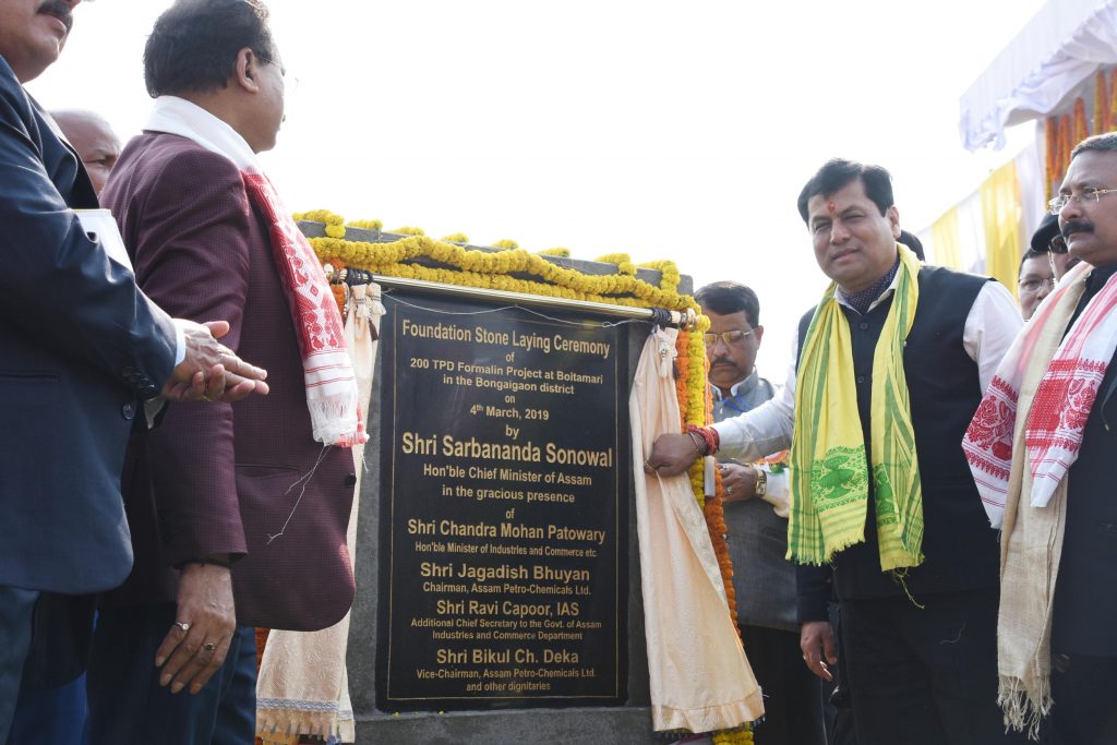 Sonowal lays foundation for 200 TPD Formalin plant Present State government succeeds to augur an investor friendly climate in State: Assam CM