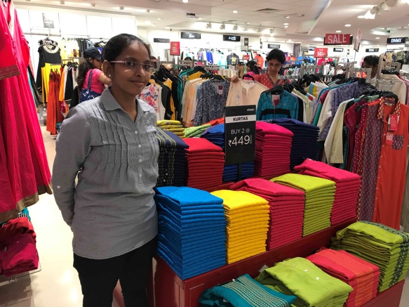 During the feasibility study for the HSBC Youth Skilling Project, the team came across Neha’s family. After knowing her aspirations, the team convinced her husband to let her enroll in a vocational training course. Finally, she joined a six-month diploma course in “Pattern Master” at Apparel Training and Design Center. After successful completion of the course, Neha has now got a job at an apparel showroom in the city at a monthly salary of Rs 14,500, effectively doubling her family’s income. She is now full of confidence for the future and feels she will be able to give good education to her children in future.