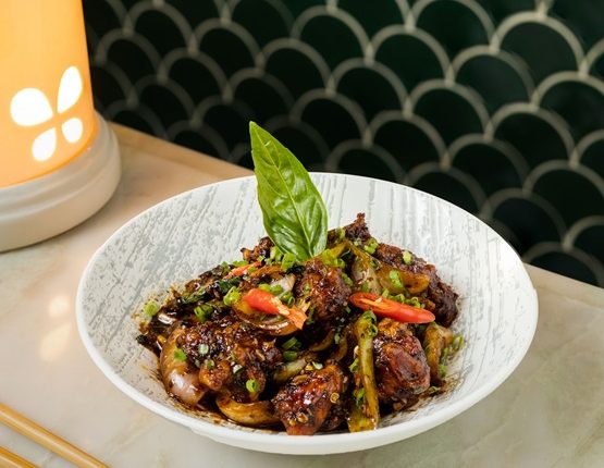 For mains, choose from three curry classics, the fragrant Green Curry, the bold Red Curry, or the rich, slow-cooked Massaman Curry, each served with comforting jasmine rice. If you’re craving something more robust, go for Pad Krapao, where holy basil and spice take centre stage. Seafood lovers can dig into Thai Chilli Prawns, glazed in a sweet-spicy sauce, while Prik Thai Dum, a smoky black pepper stir-fry, adds a deeper, more intense flavour profile.