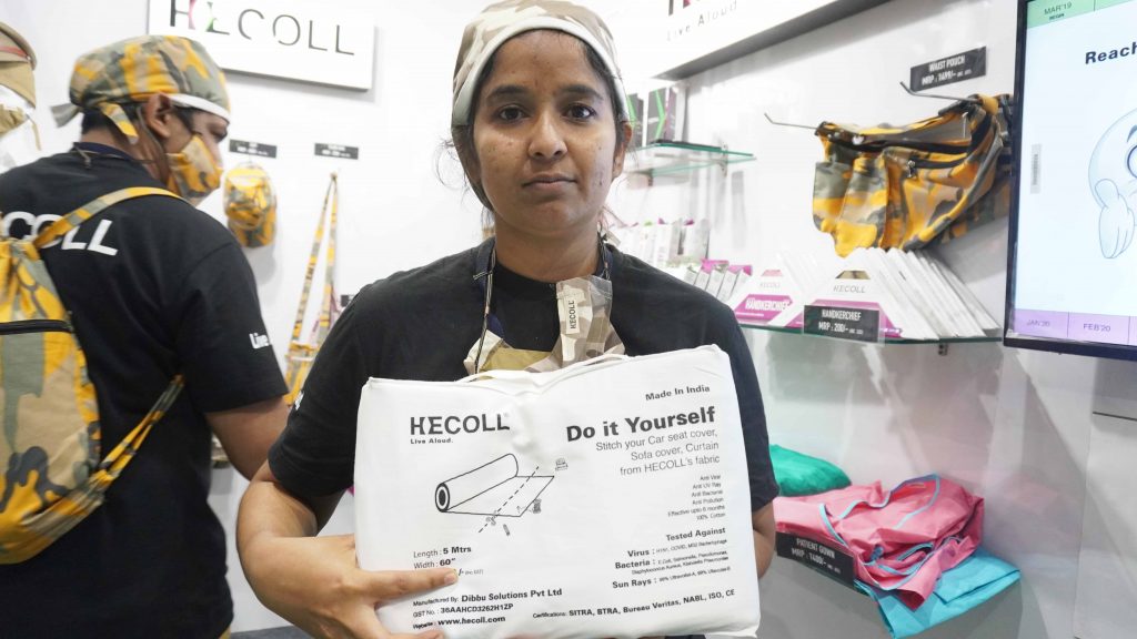 Some of the innovative products include Hecoll Anti Virus Fabric and products. According to Deepthi Nathala, Founder of Dibbu Solutions, the one-year-old city-based Startup has showcased washable and reusable face mask and headgears. The textile is manufactured using disinfectants. The fabric is proven and tested against H1N1, COVID, Ecoli, and Salmonella. The fabric is safe against dust, S02, No2, Pollen and Ultraviolet A & B sun rays.