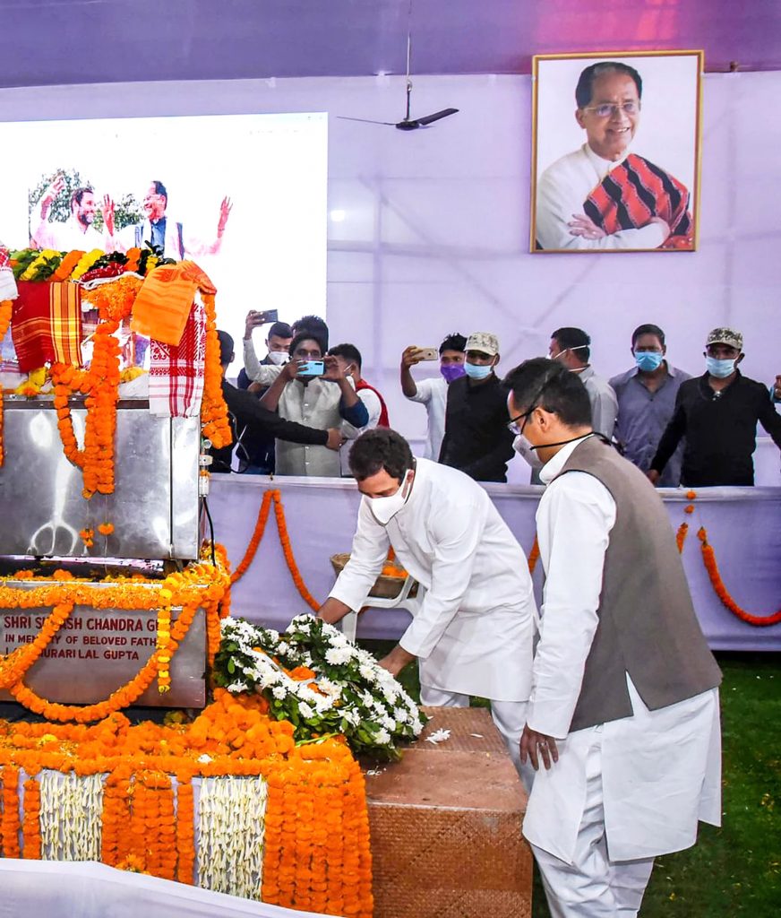 Congress leader Rahul Gandhi paid homage to the mortal remains of former Assam Chief Minister Tarun Gogoi here on Wednesday and said Gogoi was his guru. Gandhi said Gogoi’s demise is a personal loss for him. Tarun Gogoi breathed his last on Monday, after which the Congress was mourned. On Wednesday, Congress leader Rahul Gandhi also reached Guwahati and paid homage to the former CM. After coming to Guwahati by a special aircraft from Goa, Gandhi directly reached Srimanta Shankardev Kalakshetra where the mortal remains of Gogoi have been kept for the final darshan of the people. He paid floral tributes to Gogoi, while the son of the departed Congress leader was present.