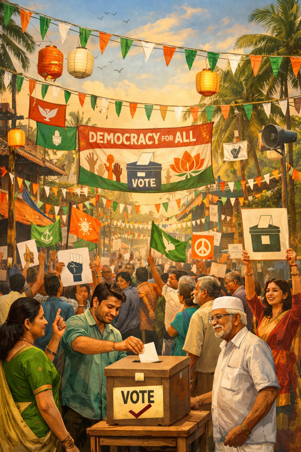 In the flickering fluorescent glow of a small electrical shop in Pattazhy, Pathanapuram assembly constituency, Kerala, I was earnestly negotiating the price of a few LED bulbs. The shopkeeper and I were locked in that sacred Indian ritual of bargaining when the Congress candidate swept in like a minor monsoon, complete with a trailing entourage of workers looking suitably devoted.