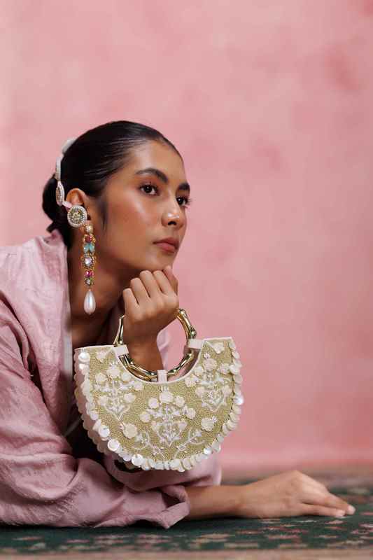 At the heart of Saaya lies the belief that every shadow carries a story. Each bag in the collection is crafted as a canvas where shadow and light meet, highlighting textures, embroidery, and sculptural forms. Hand embroidery, delicate beadwork, and detail elevate the bags into heirloom-worthy creations designed not just for the season, but to be cherished across time.