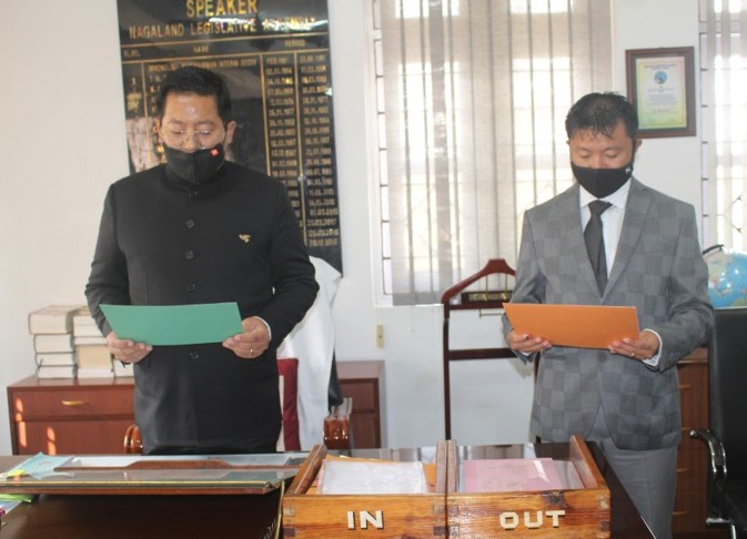 Both the newly elected members signed the roll of members of the Assembly in the presence of Nagaland Legislative Assembly commissioner and secretary Dr P.J. Antony.