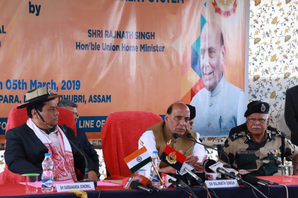 Guwahati : Two pilot projects covering about 71 Kms on Indo-Pakistan Border (10 Kms) and Indo-Bangladesh Border (61 Kms) of Comprehensive Integrated Border Management System (CIBMS) have been completed. The Stage has been set now for taking up Stage-II and Stage-III covering about 1955 Kms of the border which cannot be physically fenced. The CIBMS project will vastly improve the capability of BSF in detecting and controlling the cross border crimes like illegal infiltration, smuggling of contraband goods, human trafficking and cross border terrorism etc. Union Home Minister Shri Rajnath Singh inaugurated the project BOLD- QIT (Border Electronically Dominated QRT Interception Technique) under Comprehensive Integrated Border Management System (CIBMS) on Indo- Bangladesh border in Dhubri district of Assam today. Interacting with media persons, Shri Rajnath Singh said earlier in the month of September, 2018, two pilot projects of “smart” border fencing built under the CIBMS programme in Jammu were operationalised. He added that over a period of time the complete border will be covered.