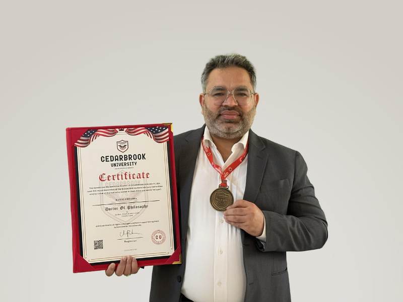 US CPA & CA Kamal Chhabra Honoured with Doctorate in Global Finance Education by Cedarbrook University, USA