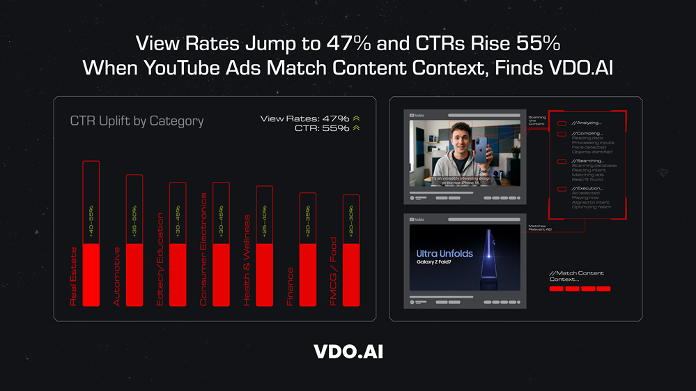 View Rates Jump to 47% and CTRs Rise 55% When YouTube Ads Match Content Context, Finds VDO.AI